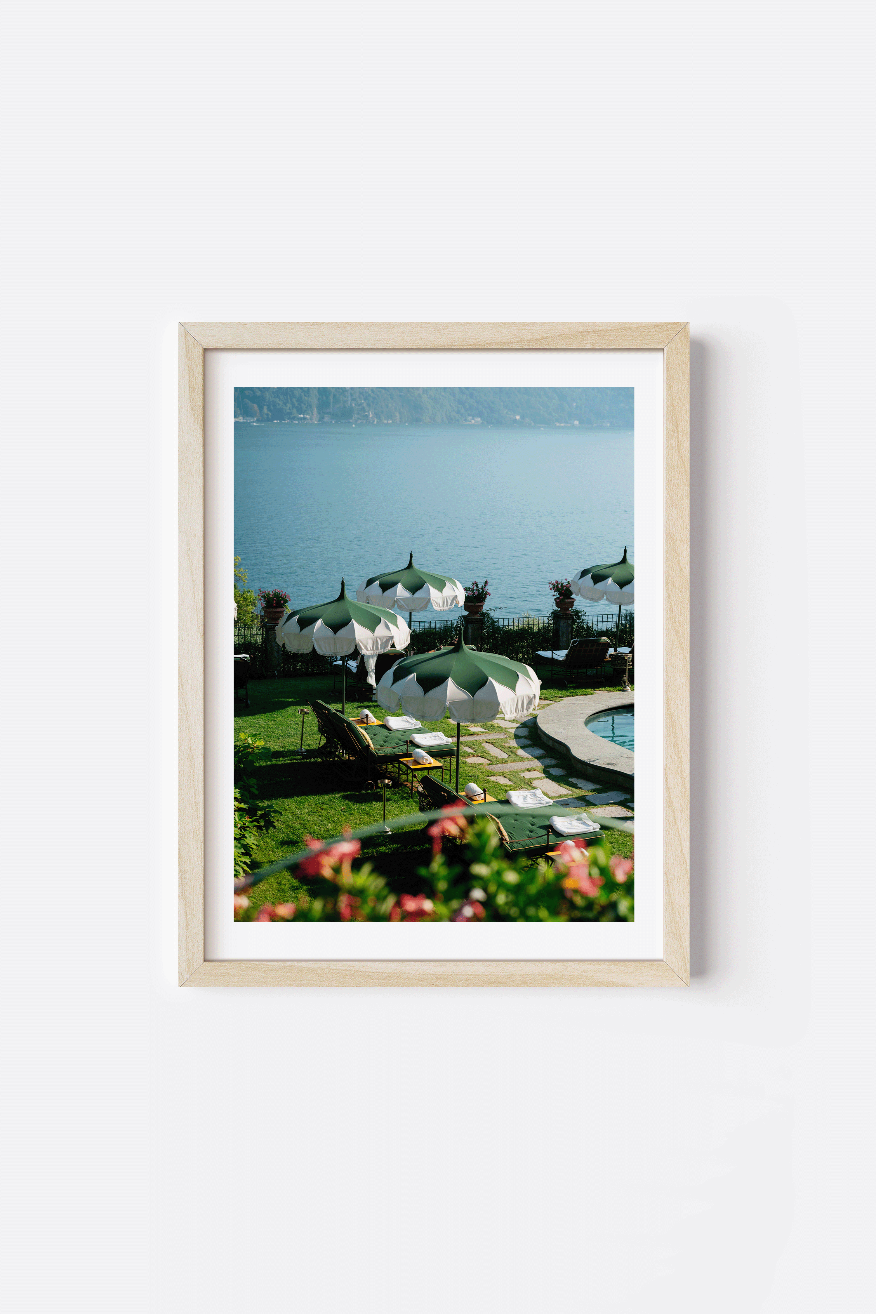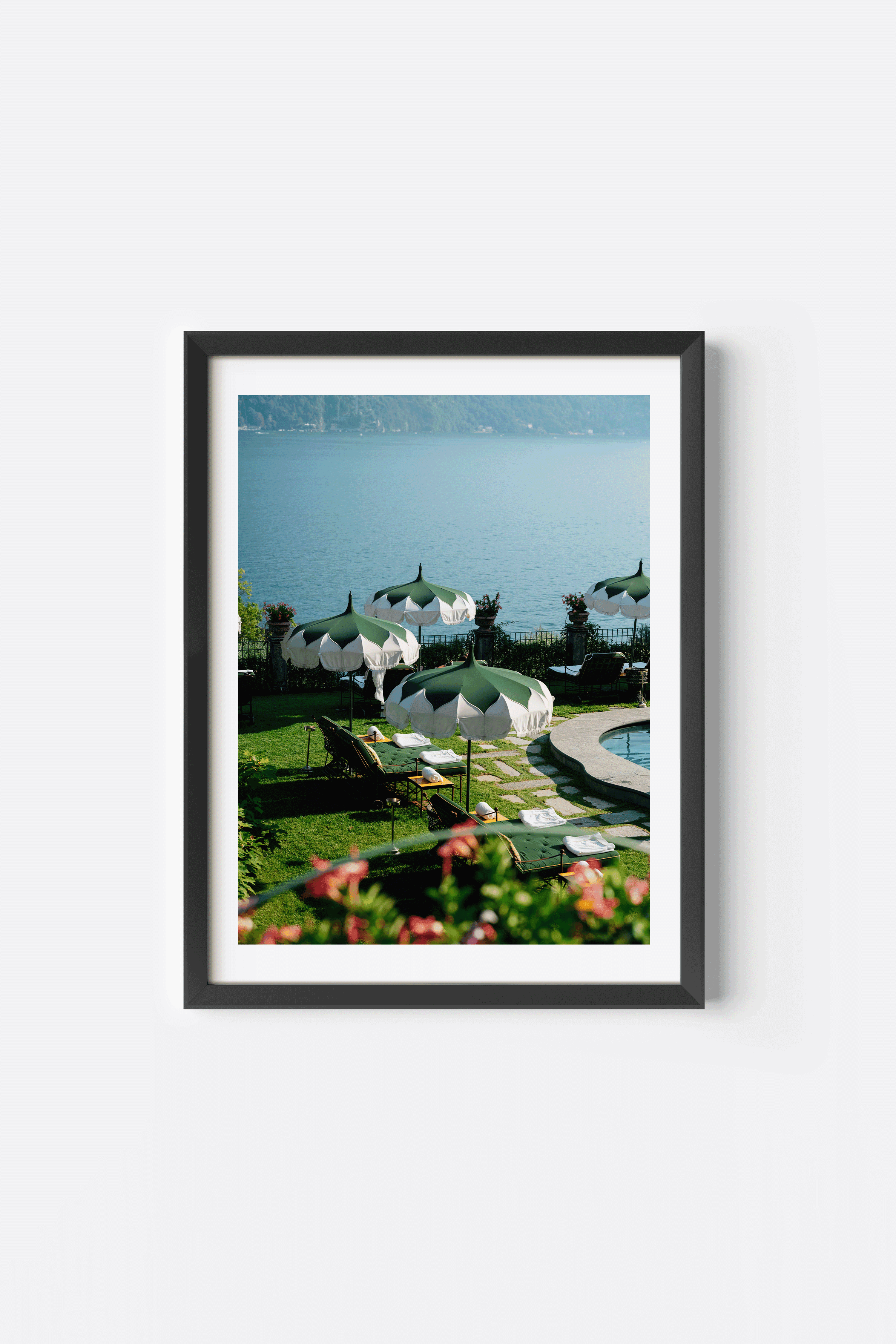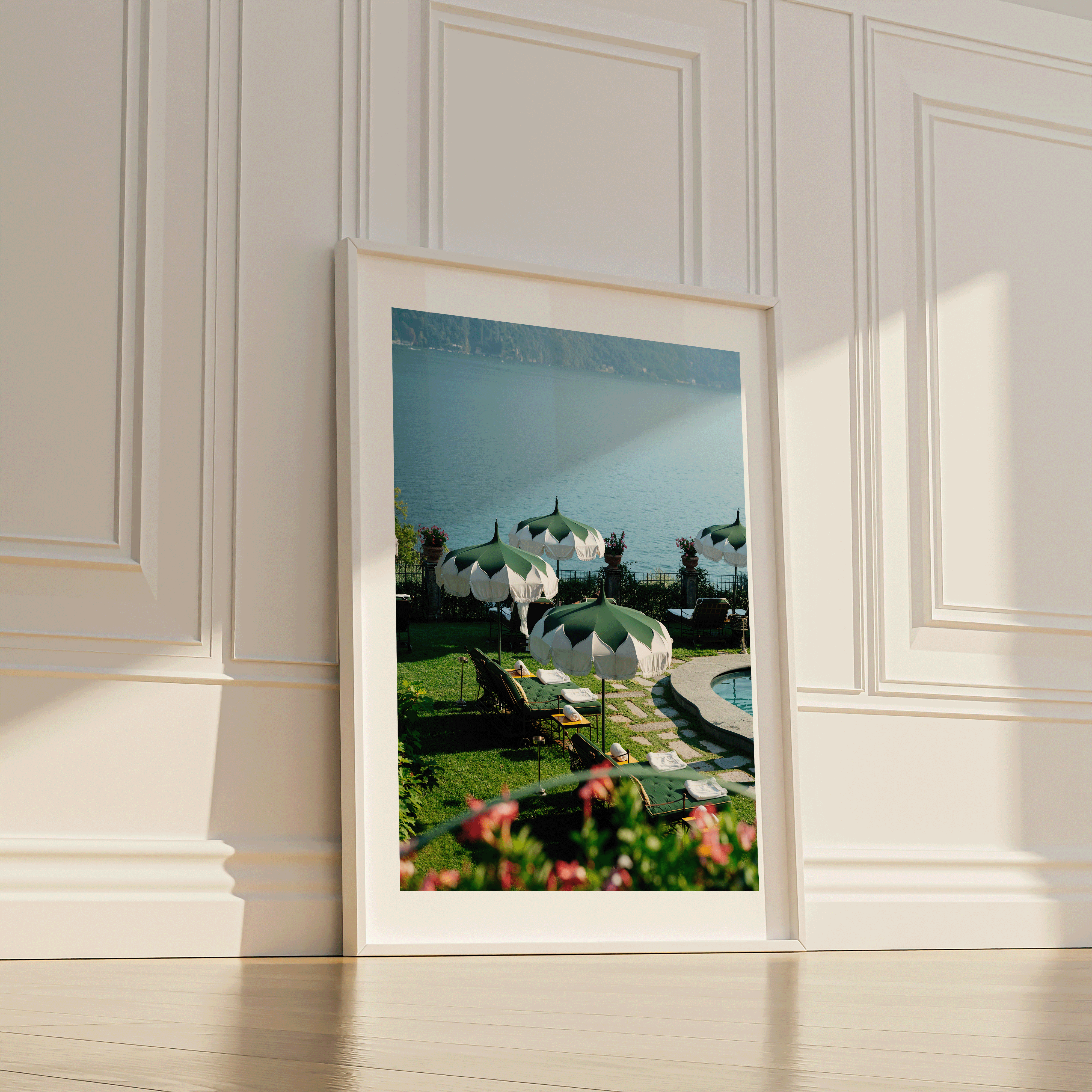 Soft gardens. Umbrellas to relax under. A lake glistening in the sun.